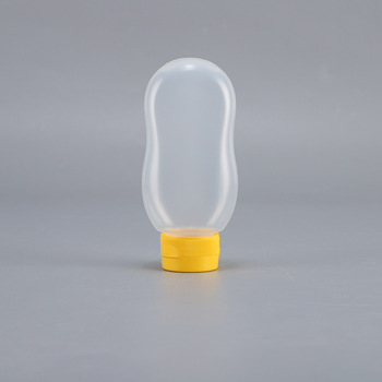 PP 100mL Mini Cute Easy Squeeze Salsa de llenado en caliente Ketchup Barbacoa Miel Botella de plástico con tapa abatible amarilla